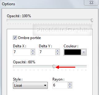 27.Cochez Ombre portée. 7/7. Noir. Curseur Opacité