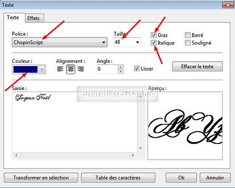 46.Cliquez sur le T pour écrire: Police ChopinScript (ou autre) Taille 48. Gras. Italique.