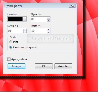 11. Menu Filtre > Esthétique > Ombre portée. Noir. Opacité=80. X=Y= 10