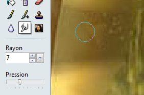 54. Le travail est terminé mais...il y a un petit défaut sur le bras de la dame de droite (les petits points). Vous allez l'atténuer en frottant légèrement avec l'Outil Doigt. Rayon = 7. Pression: 4ième cran
