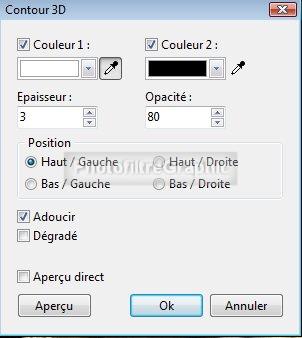 Menu Filtre > Esthétique > Contour 3D. Epaisseur 3