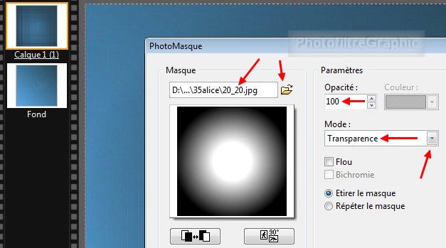 13. Appliquez le masque 20.20 avec Photomasque du menu Filtre. Mode Transparence. Opacité = 100