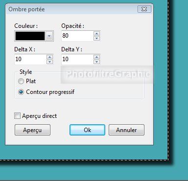 7. Menu Filtre > Esthétique > Ombre portée. Noir. Opacité=80. X=Y= 10