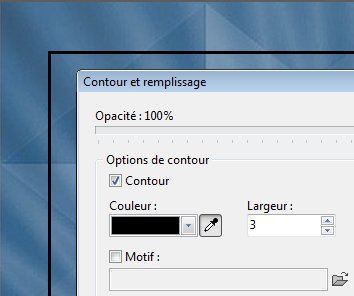 22.Clic droit dans la sélection > Contour et remplissage> 100%. Contour. Noir. L= 3