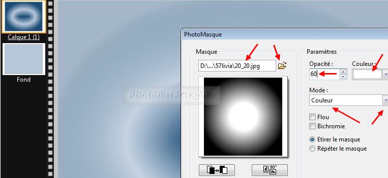 10. Appliquez le masque 20_20 avec Photomasque du menu Filtre. Couleur blanche. Opacité = 60