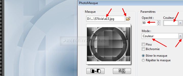 13. Appliquez le masque a13 avec Photomasque. Couleur blanche. Opacité = 50