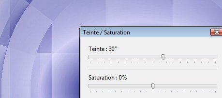 16. Menu Réglage > Teinte / Saturation. Teinte = 30°. Saturation = 0%
