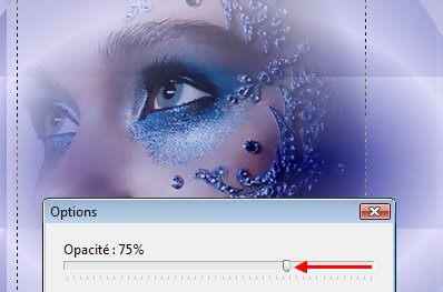 21. Double-clic sur la vignette du calque. Curseur Opacité du haut sur 75%