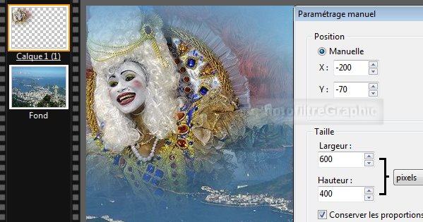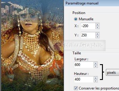 8.Clic droit dessus > Paramétrage manuel. Position Manuelle: X= -200 Y= -70. Taille sans changement