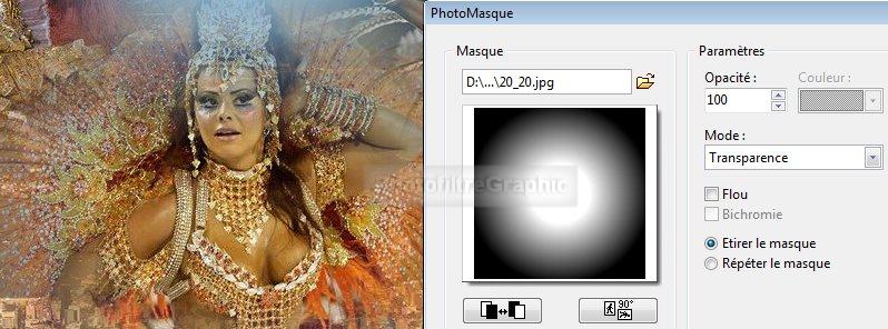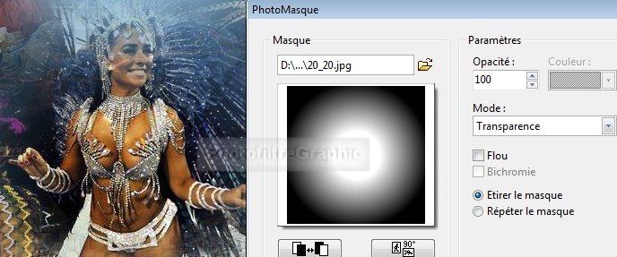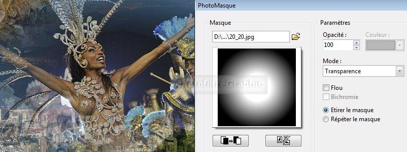 6. Appliquez le masque 20_20 avec Photomasque du menu Filtre. Mode Transparence. Opacité = 100
