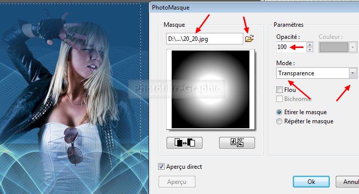 30. Appliquez le masque 20_20 avec Photomasque du menu Filtre. Mode Transparence. Opacité = 100