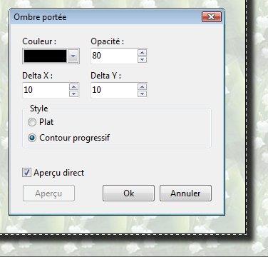 24f. Menu Filtre > Esthétique > Ombre portée. Noir. Opacité= 80. X = Y= 10