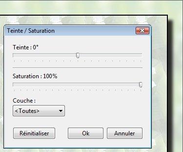 24j. Menu Réglage > Teinte/Saturation. Teinte= 0°. Saturation = 100%