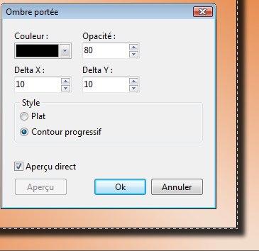 13f. Menu Filtre > Esthétique > Ombre portée. Noir. Opacité= 80. X = Y= 10