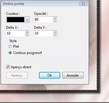 19f. Menu Filtre > Esthétique > Ombre portée. Noir. Opacité= 80. X = Y= 10