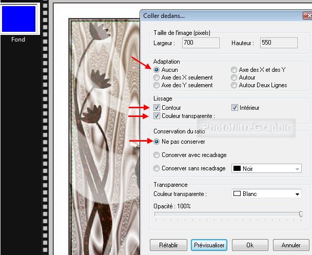 45. Menu Filtre > Module externe > Coller dedans. Cochez Aucun. Contour. Couleur transparente. Ne pas conserver