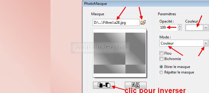 6. Appliquez le masque a28 en l'inversant avec Photomasque du menu Filtre. Opacité = 100. Couleur blanche