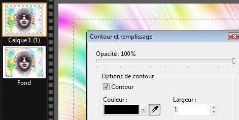 17. Clic droit dans la sélection > Contour et remplissage > 100%. Contour. Noir. L= 1