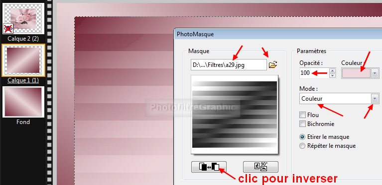 33. Appliquez le masque a29 en l'inversant avec Photomasque. Opacité = 100. Couleur de l'arrière-plan