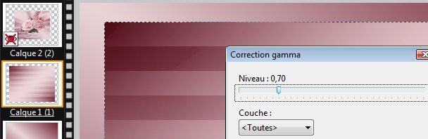 25.Double-clic sur la vignette des roses > Curseur du haut sur 70%