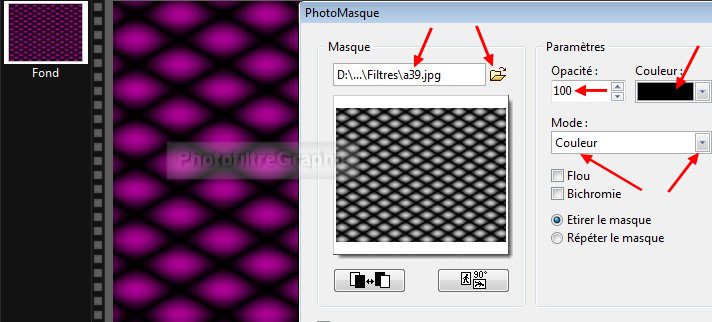 6.Appliquez le masque a39 avec Photomasque du menu Filtre. Opacité = 100. Couleur noire