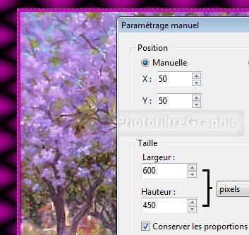 23.Position manuelle: X=50 Y=50 Taille: Largeur=600 Hauteur =450