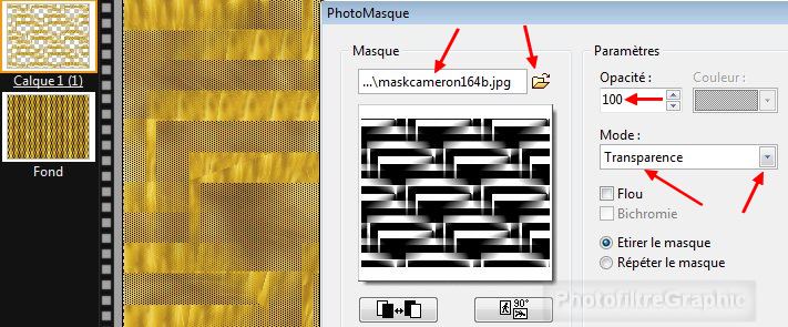 du menu Filtre. Opacité = 100. Mode Transparence. Etirer le masque