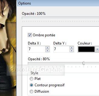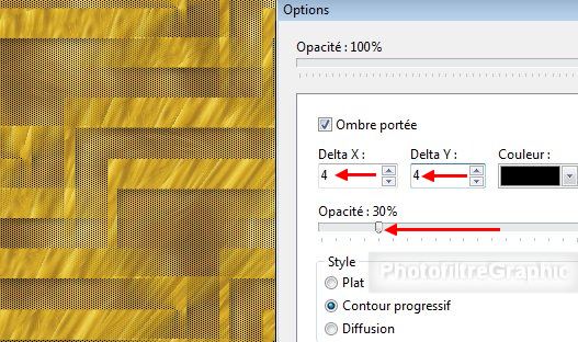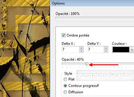 calque 1. Cochez Ombre portée. 4 et 4. Noir. Curseur