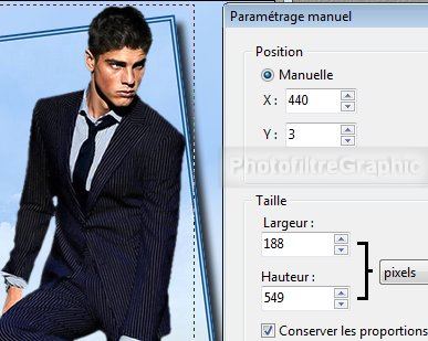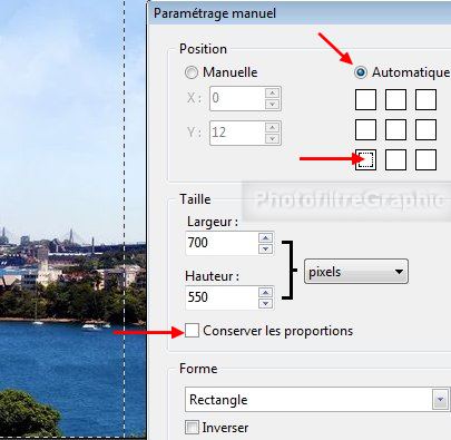 5.Menu Sélection > Paramétrage manuel. Décochez Conserver les proportions