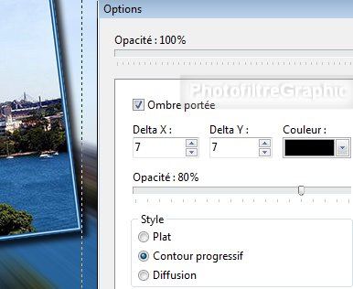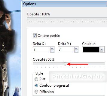 calque. Cochez Ombre portée. 7 / 7. Noir. Curseur Opacité du bas sur