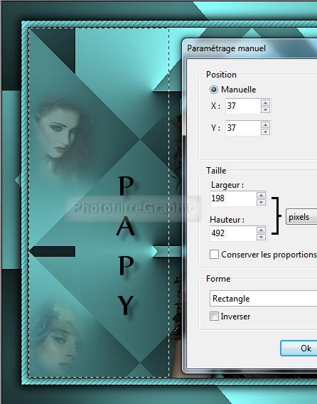 Largeur = 198 Hauteur= 492. Forme Rectangle