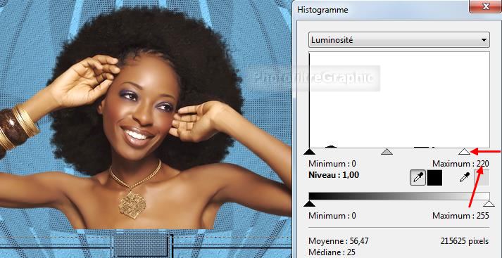 25. Menu Réglage > Histogramme. Coulissez le curseur blanc du haut pour