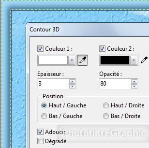 Contour 3D. Couleur 1=Blanc. Couleur 2=Noir. Epaisseur=3. Opacité=80.