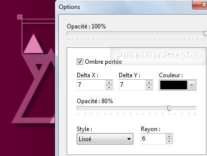 calque . Cochez Ombre portée. 7/7. Noir. Curseur Opacité du bas sur 80%. Lissé.