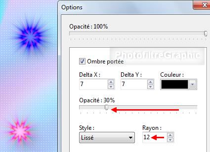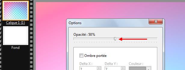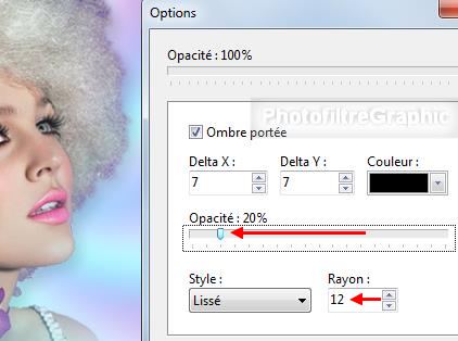 calque. Cochez Ombre portée. 7 / 7. Noir. Curseur Opacité du bas sur