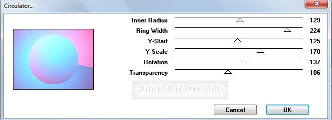 11c. Version studio. Menu Filtre > Filtres 8BF > VM Distortion > Circulator:129.