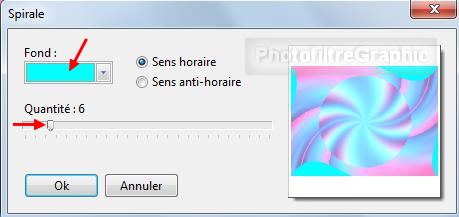 Spirale: Fond: couleur de l'arrière-plan. Sens horaire. Quantité = 6