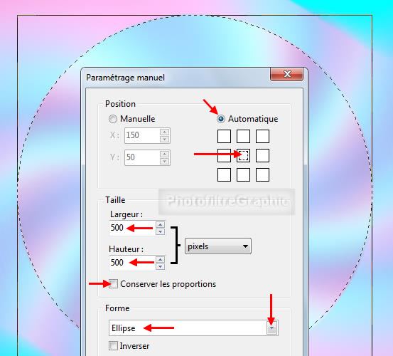 16.Menu Sélection > Paramétrage manuel. Décochez Conserver les proportions