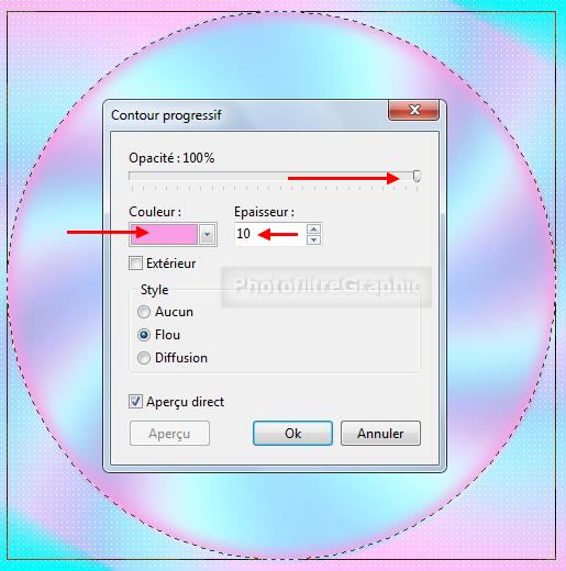 progressif. Opacité =100%. Couleur de l'avant-plan.