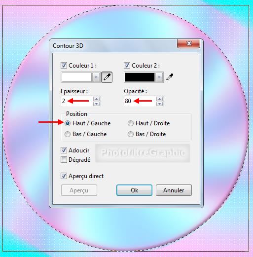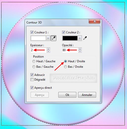Contour 3D. Couleur 1=Blanc. Couleur 2=Noir. Epaisseur= 2. Opacité= 80.