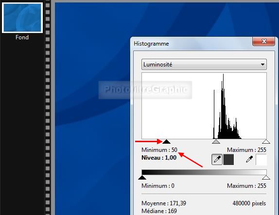 Coulissez le curseur noir du haut pour avoir Minimum à 50