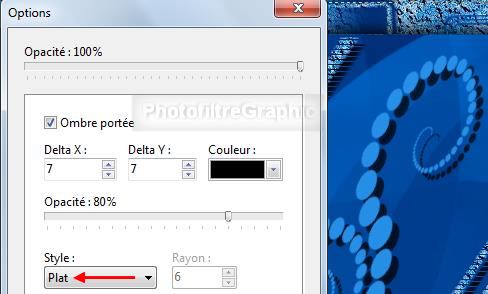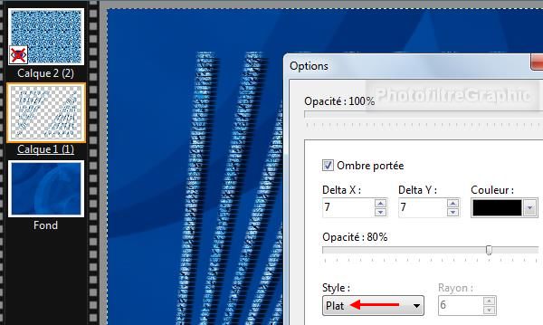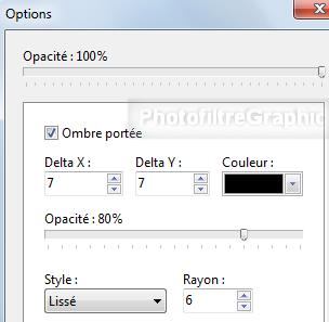 calque . Cochez Ombre portée. 7/7. Noir. Curseur Opacité du bas sur 80%.