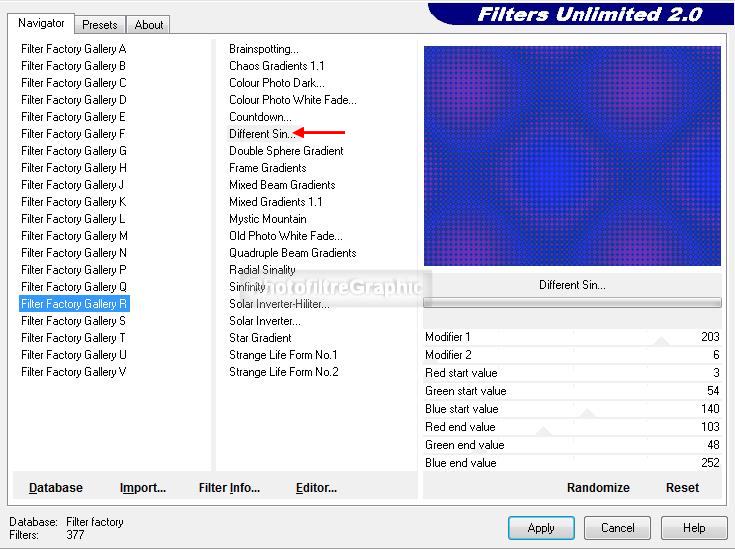 Factory R > Different Sin: 203. 6. .3 .54. 140. 103. 48. 252 > Apply en bas > OK tout en bas