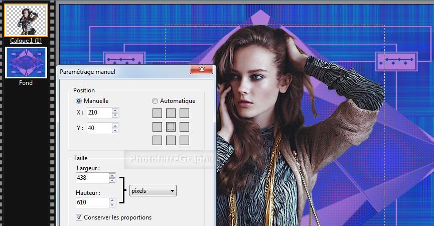 15. Menu Calque > Paramétrage manuel. Conserver les proportions