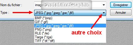 9.En choisissant le format JPEG qui est le plus employé,c'est lui qui sera donc proposé pour enregistrer mais quand vous enregistrerez,en cliquant sur la petite pointe,vous pourrez choisir d'autres formats d'enregistrement