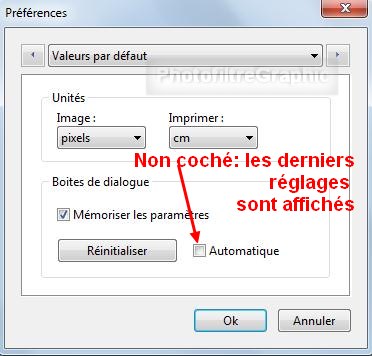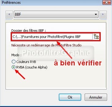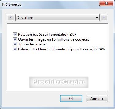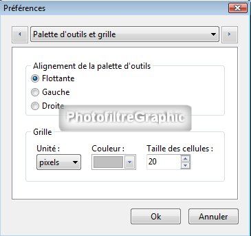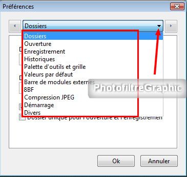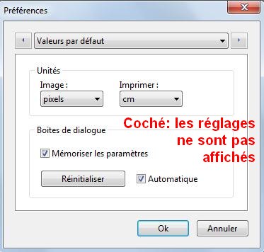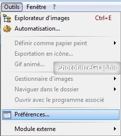 Version Studio et PhotoFiltre 7: Réglages des Préférences