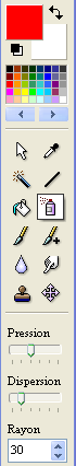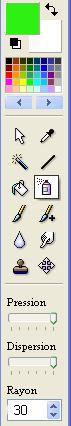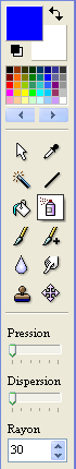 34.Cliquez sur l'outil Aérographe avec la Pression et la Dispersion mise à zéro. Rayon = 30. Couleur = bleue