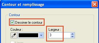 15.Sélectionnez Dessiner le contour. Largeur = 3 Couleur noire
