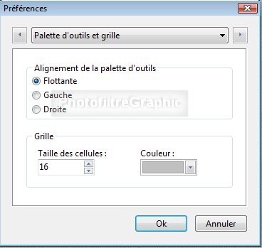 1.Réglage préalable de la grille 2.Menu Outils > Préférences > Palette d'outil et grille 3.Taille des cellules: 16