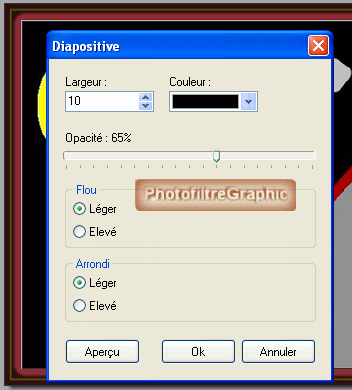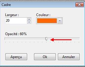 20.Cadre simple ouvre une fenêtre identique à ce que nous venons de faire mais avec un réglage supplémentaire pour l'Opacité